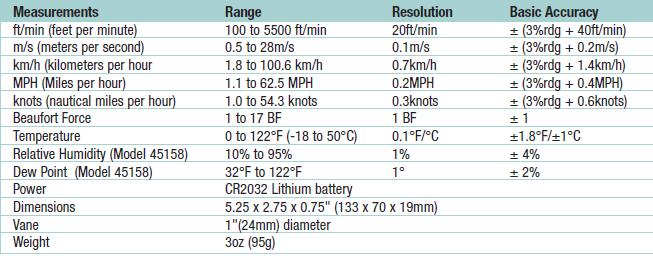 EXTECH 45158葉輪風(fēng)速氣象儀的技術(shù)參數(shù)