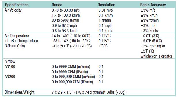 美國EXTECH AN100葉輪風(fēng)速儀的技術(shù)參數(shù)