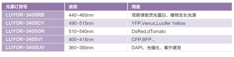 LUYOR-3405 GFP熒光激發(fā)光源的技術(shù)參數(shù)