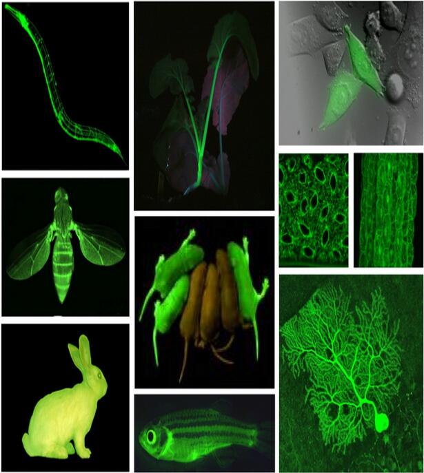 GFP:綠色熒光; EGFP:增強型綠色熒光; fluorescein熒光素