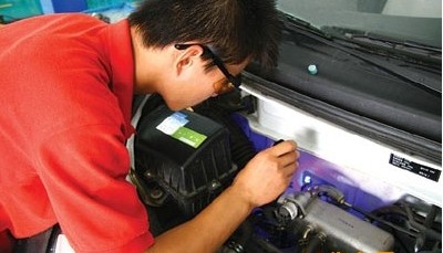 下圖為工作人員使用宏聲HsTech手電筒式BH-1320高強度紫外燈檢測泄漏圖: