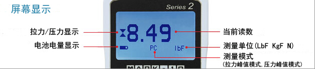 Series2經(jīng)濟型數(shù)字測力計可測量拉力,壓力,測量范圍10-500N.具有動態(tài)測量模式及峰值測量模式.測量精度±0.5%,500Hz采樣頻率,大屏幕帶背光LCD液晶顯示屏.