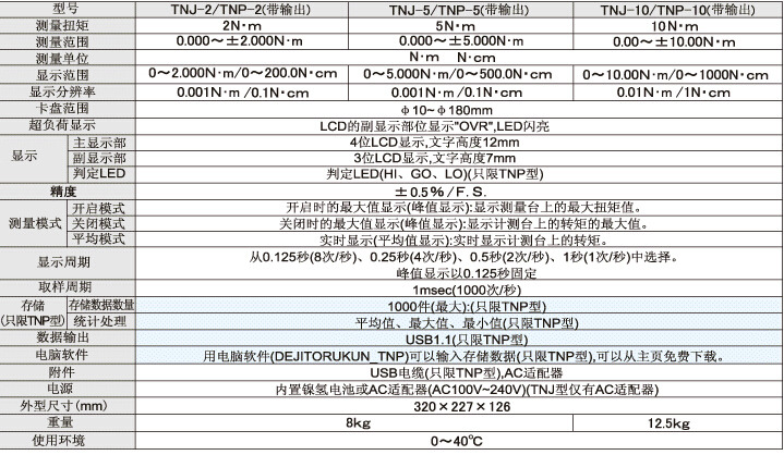 TNP-2/TNP-5/TNP-10瓶蓋扭力計(jì)/扭矩儀的技術(shù)參數(shù):