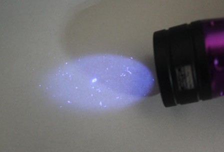 大多數(shù)的體液在高強(qiáng)度的紫外線作用下可以看到,是因為體液有自然熒光反射的特點。在復(fù)雜的刑偵現(xiàn)場,可以利用高強(qiáng)度的紫外線燈簡單及不復(fù)雜的使用方式尋找到有價值的痕跡。在高強(qiáng)度紫外線能量的激發(fā)下,這些體液的熒光反射是人的肉眼可以直接看到的。雖然,這種方式不能直接確認(rèn)所找到的體液是哪一種,但是,通過使用高強(qiáng)度紫外線燈遠(yuǎn)距離大面積的搜尋,可以直接幫助你確定在哪里有提取價值的痕跡物證,然后可以對 這些地方進(jìn)行編號標(biāo)出,從而為下一步的分析提供有價值的物證。